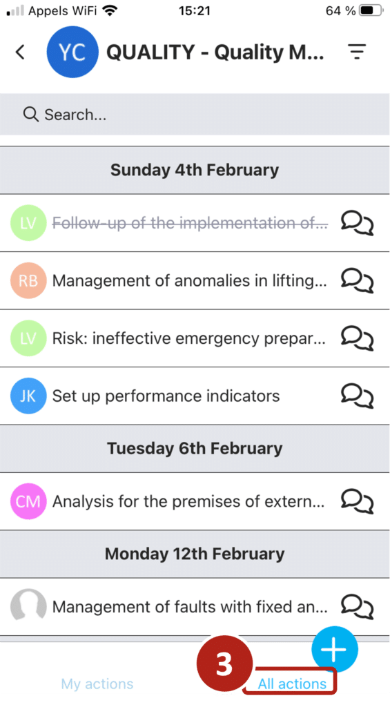 By default, the actions displayed in a folder are those for which you are responsible. To display all the actions, click on “all actions” at the bottom right of the screen.
