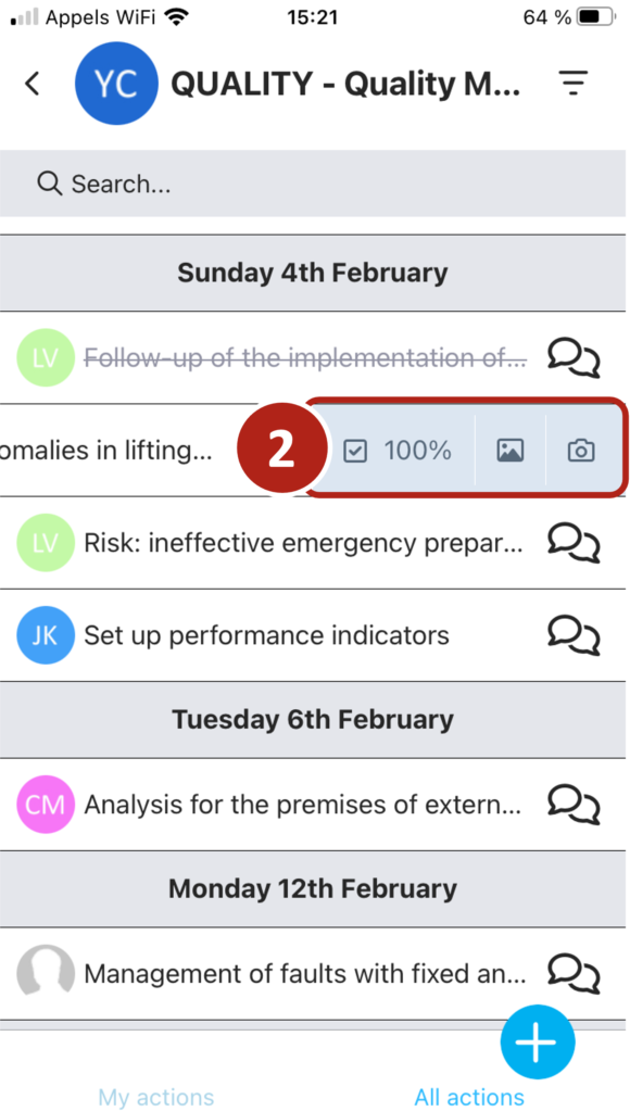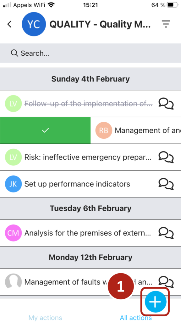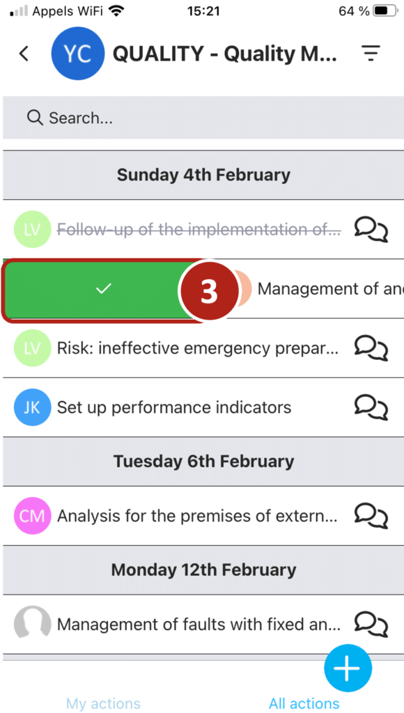 Clicking on the ‘action’ icon in the menu at the bottom of the screen displays the list of actions you need to take.