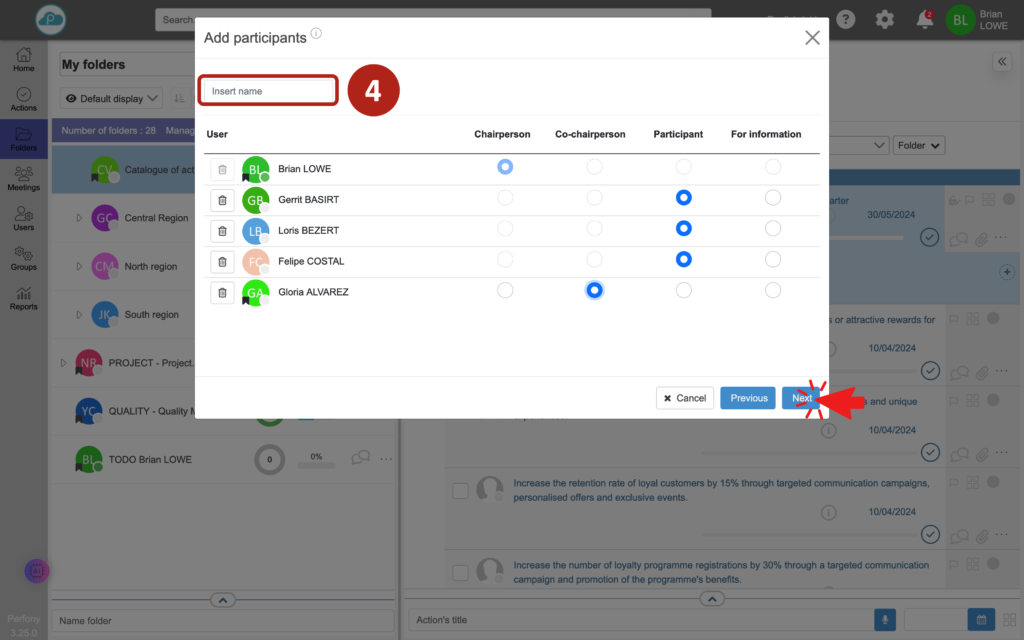 Le 3ème popin va vous permettre d’ajouter des participants à vos dossiers qui vont être dupliqués. Les participants sélectionnés seront dans tous les dossiers sélectionnés pour la duplication