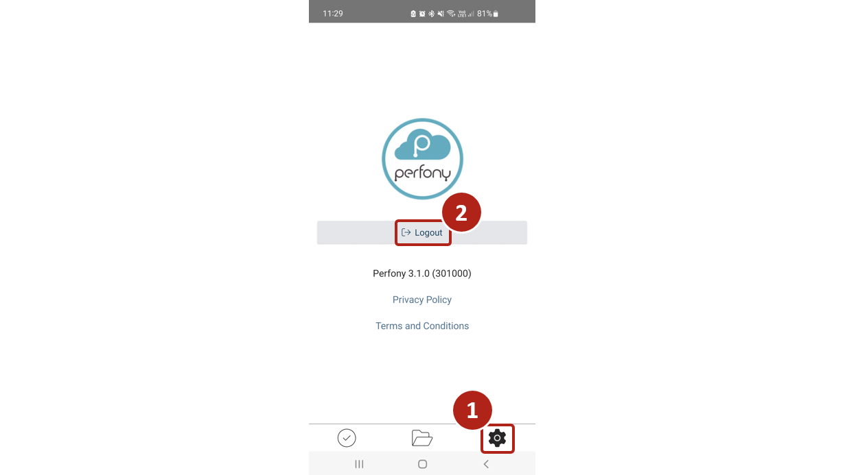 Cliquer sur le menu « déconnecter » pour interrompre votre connexion à votre espace Perfony depuis l’application.