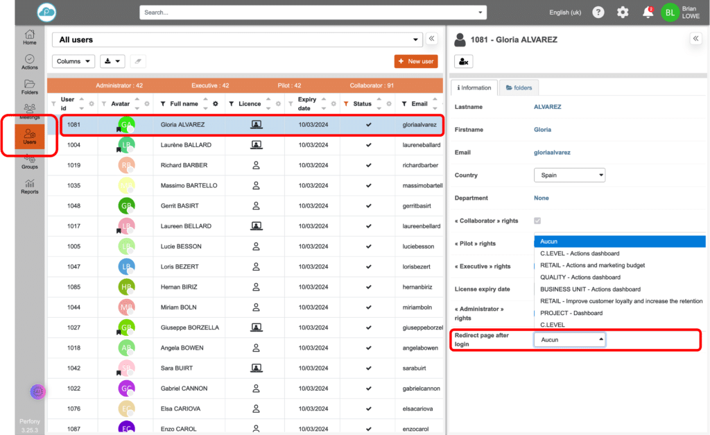 - In fondo al riquadro di destra, nel menu a discesa “Reindirizza alla connessione”, scegliere la dashboard che sarà la pagina iniziale dell’utente.