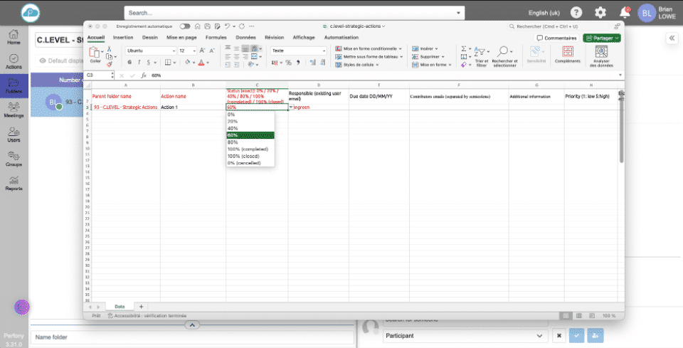 Einen Perfony-Aktionsplan mit Excel aktualisieren.