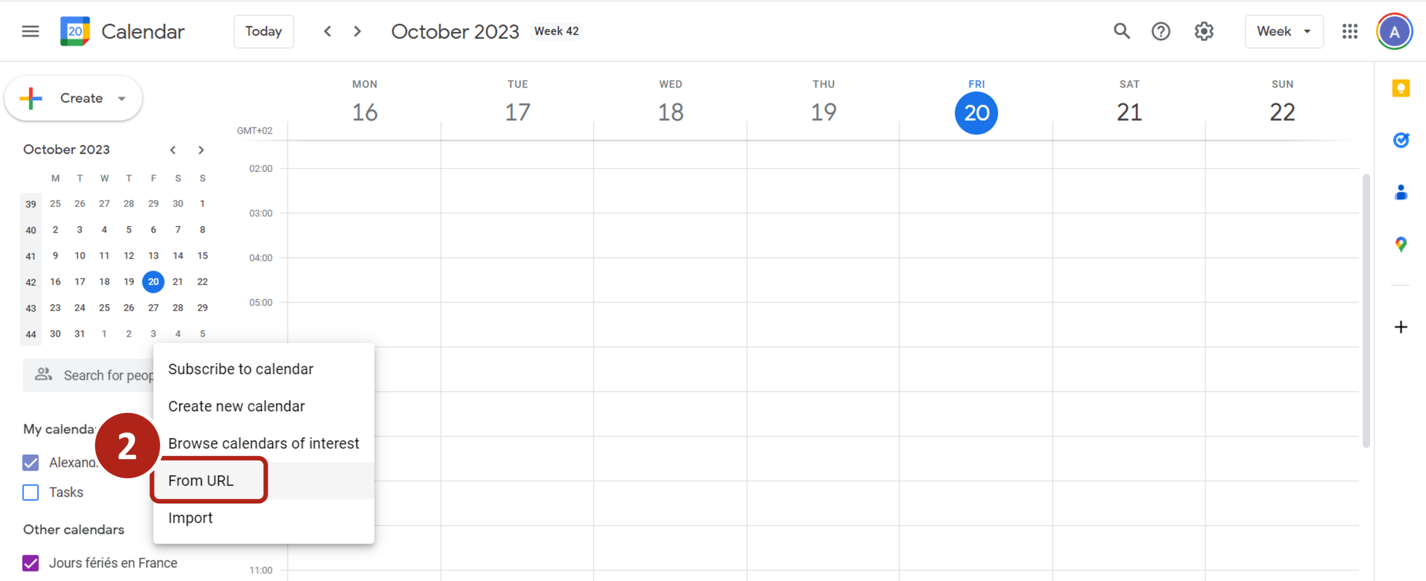 - In the sidebar, click on “Add a calendar” and then choose “From the internet”.