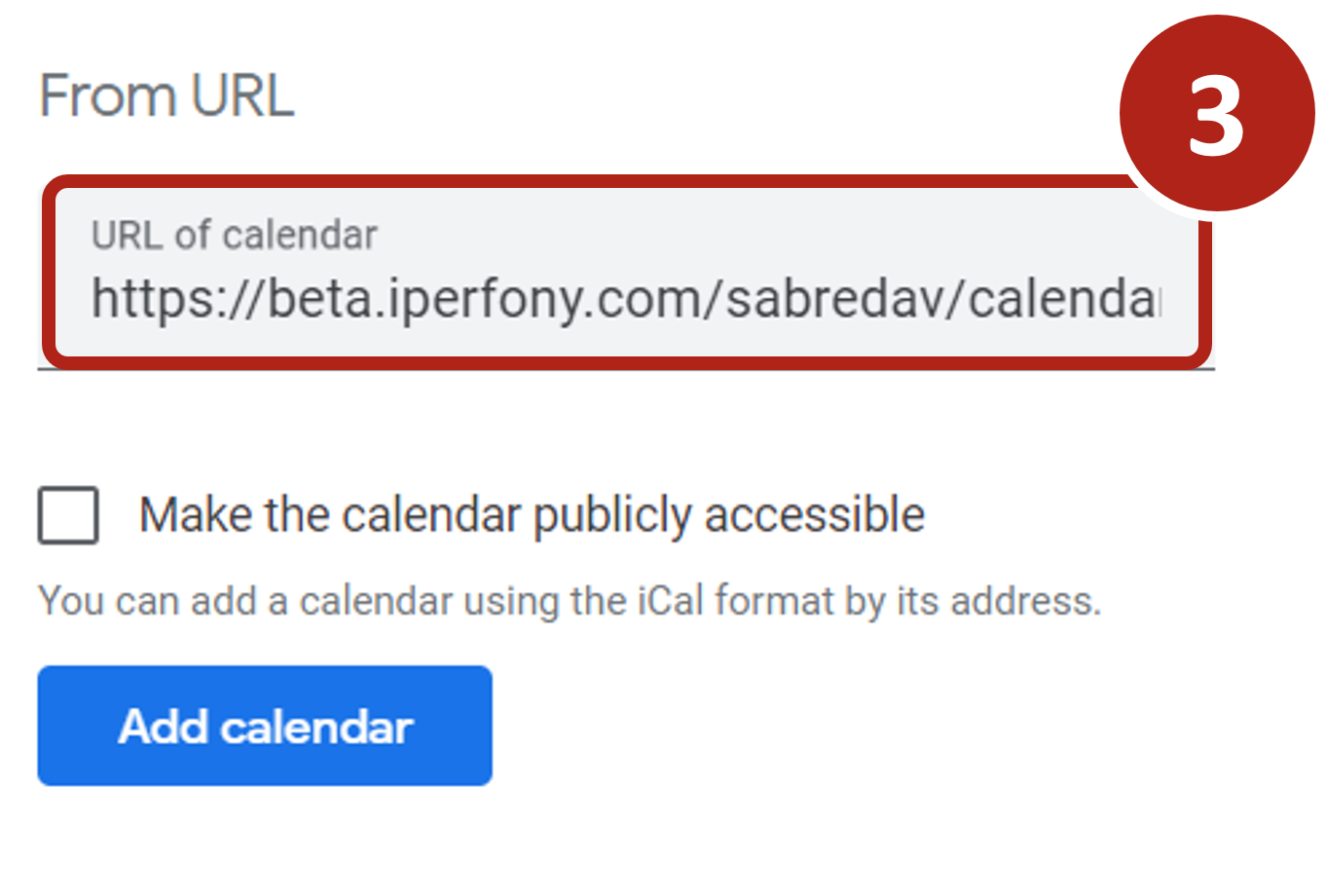 - In the “link to calendar” box, paste the URL you copied and save! You can then rename it if you wish.