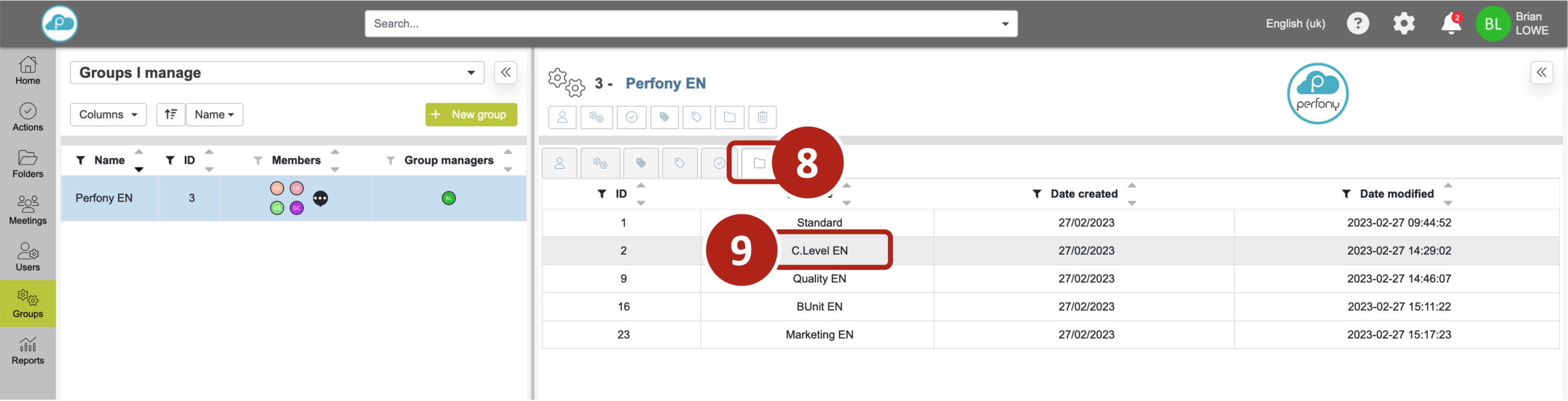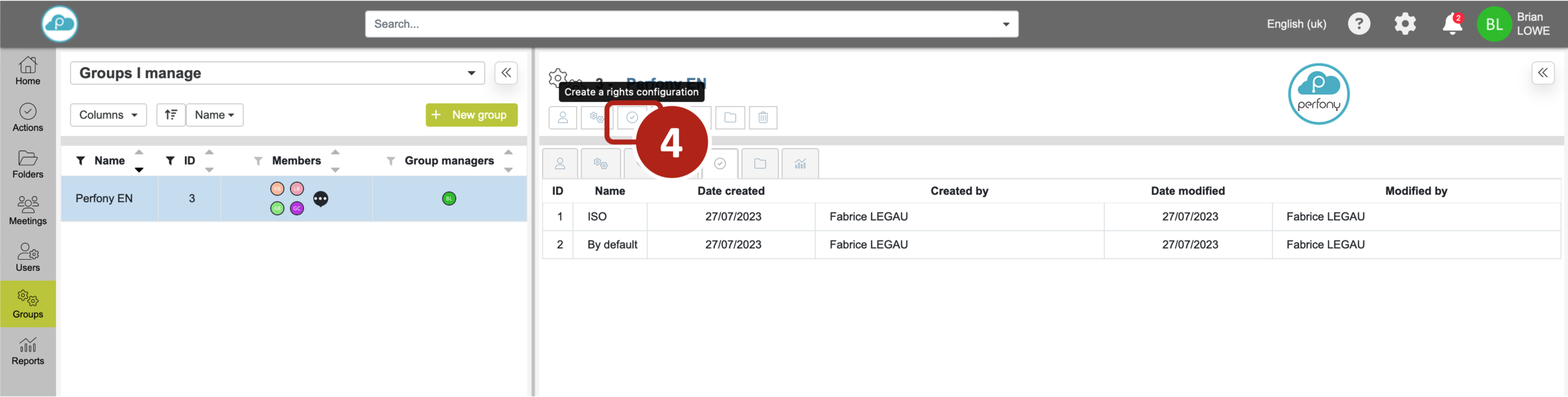 By default, two rights configurations are saved and cannot be changed in Perfony.