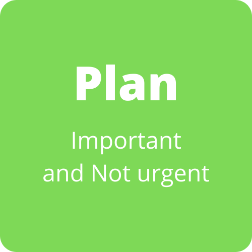 If an action falls into this quadrant, it will have to be planned in time so that its realization does not impinge on more urgent tasks. The planning of the tasks in this quadrant should be done over the following weeks. It is preferable to organize yourself so that the maximum number of important tasks are not urgent so that they end up in this quadrant because it allows you to simplify your time management and not be under constant pressure.
