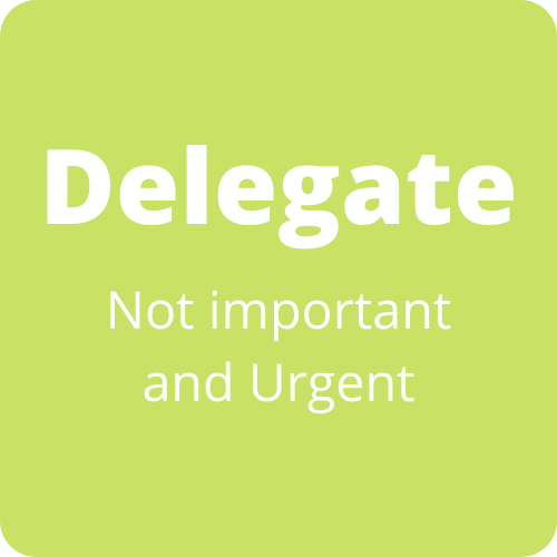 - The third quadrant is for urgent, but not important tasks, which are therefore to be Delegated.