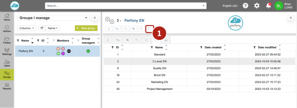 Puedes modificar una plantilla de carpeta en cualquier momento. Para ello, haz clic en la pestaña «plantillas de carpetas» y selecciona la plantilla que desees :
