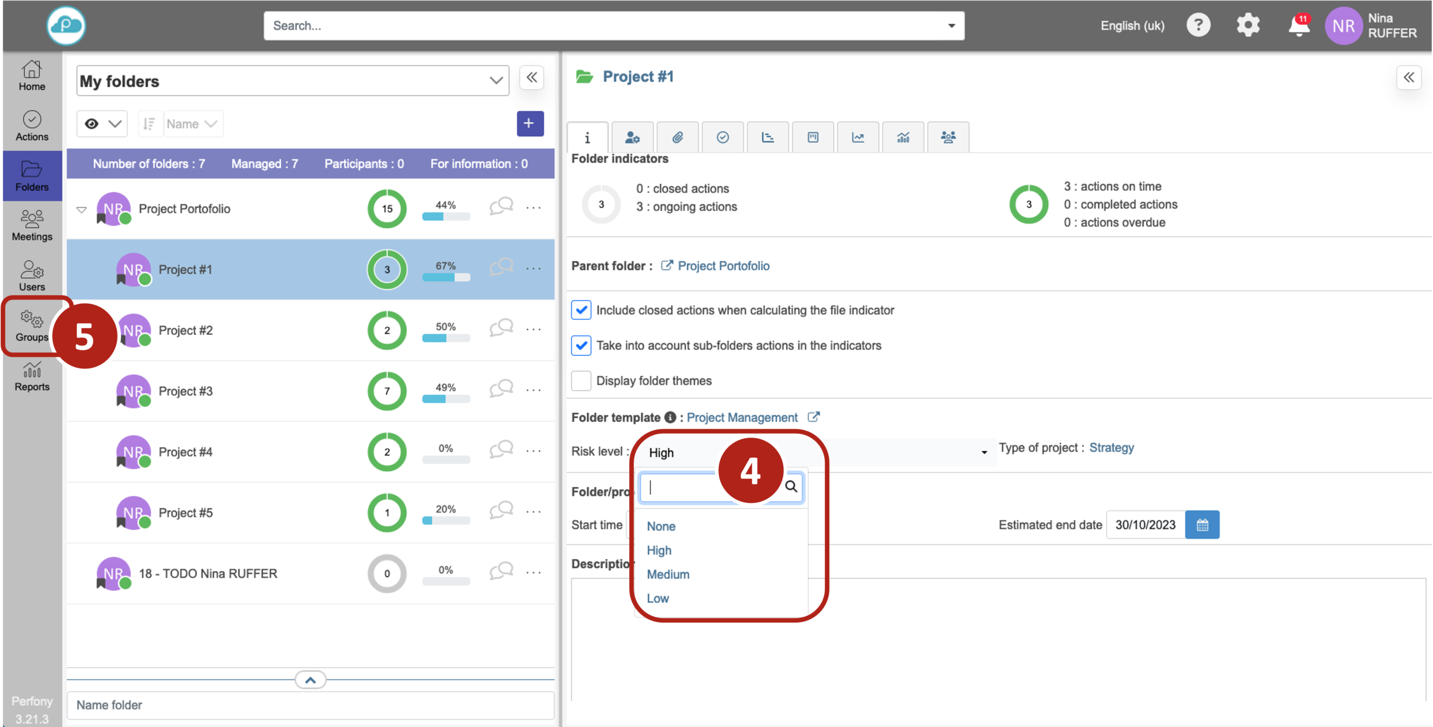 Il est possible de personnaliser les thèmes de dossier et d’y inclure des listes déroulantes pour choisir des valeurs . Cette fonctionnalité est disponible dans le menu « Groupe » et accessible aux gestionnaires de groupe. Si vous n’avez pas accès au menu « Groupe » merci de contacter votre référent Perfony.