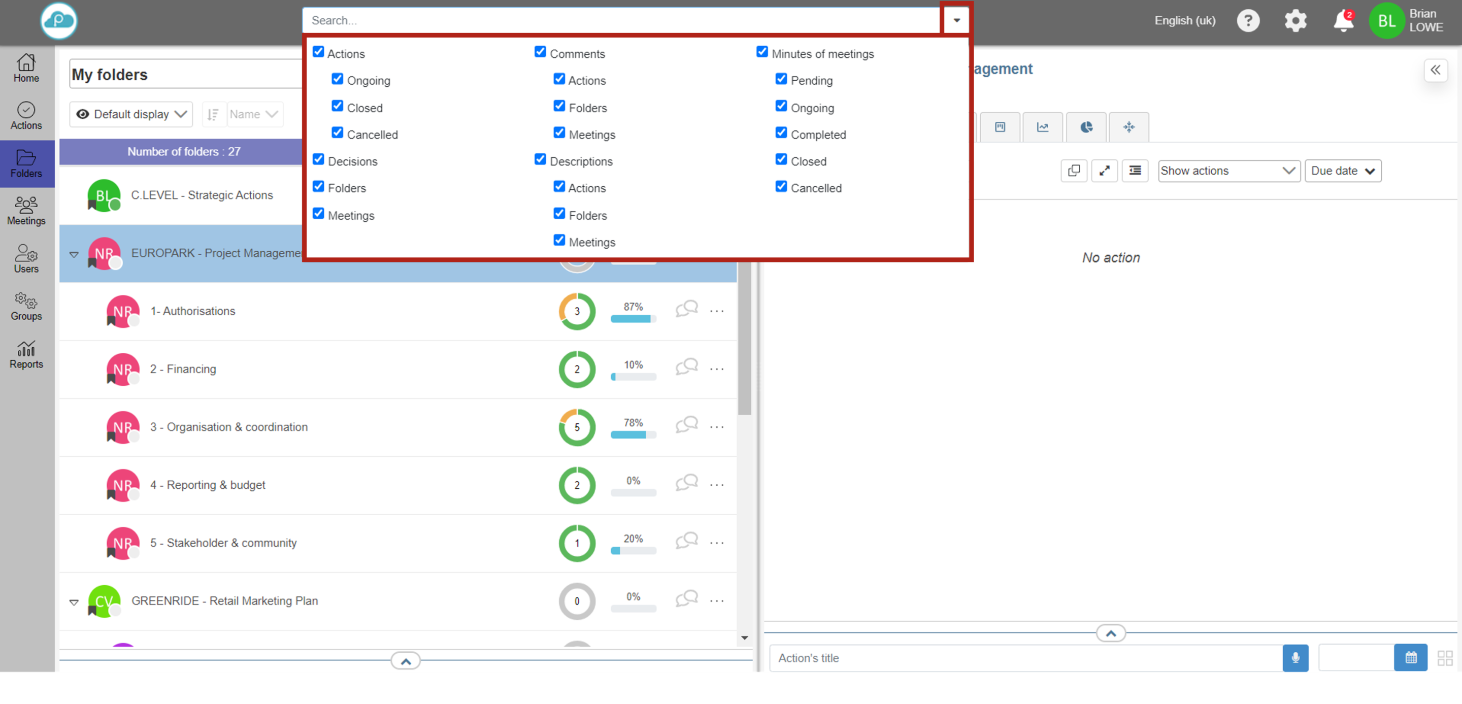 Elle permet de rechercher un dossier, une action, une réunion, une décision…