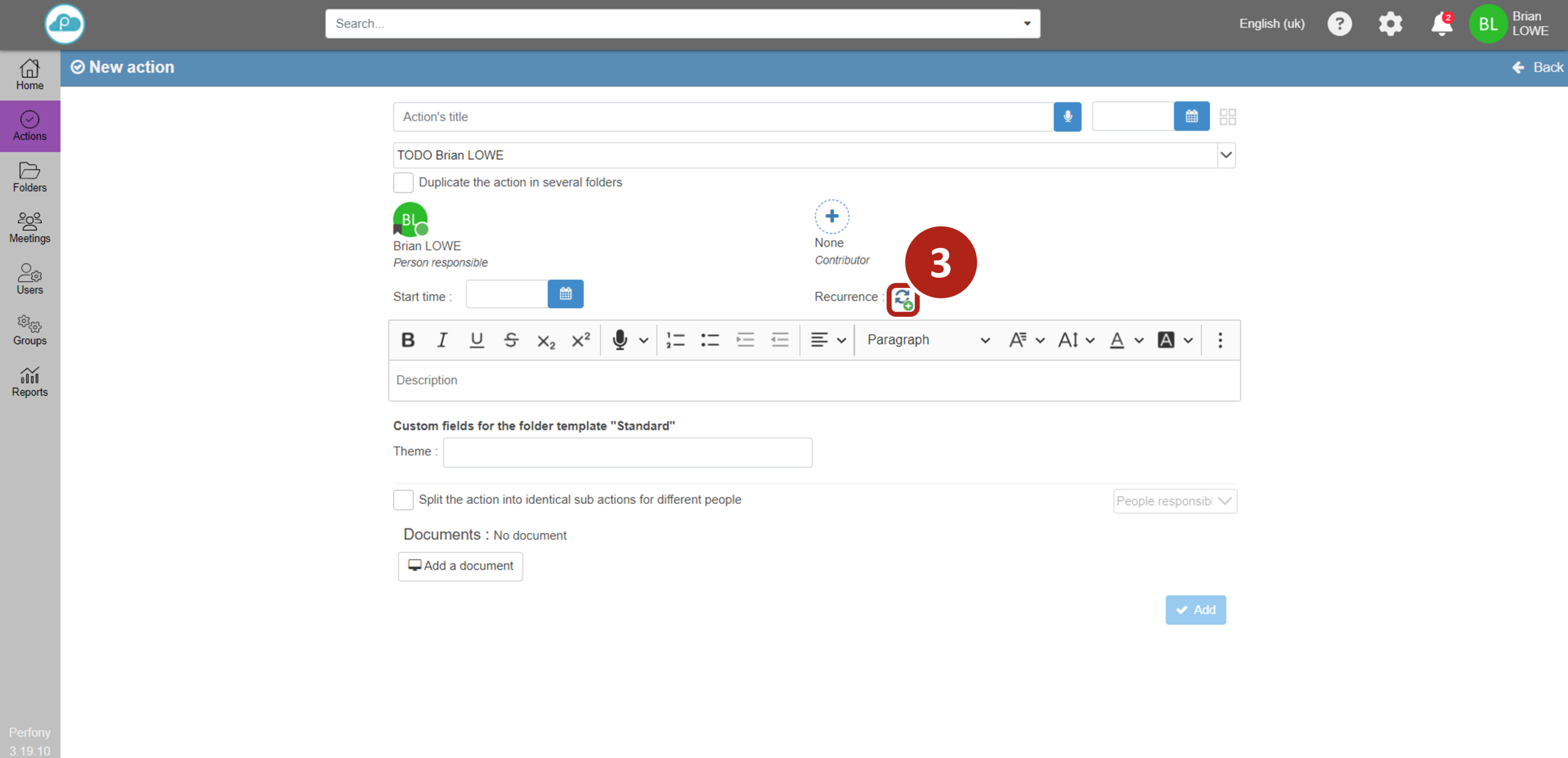 Ensuite, paramétrez votre action, donnez lui une date d’échéance puis cliquez sur l’icône de périodicité.
