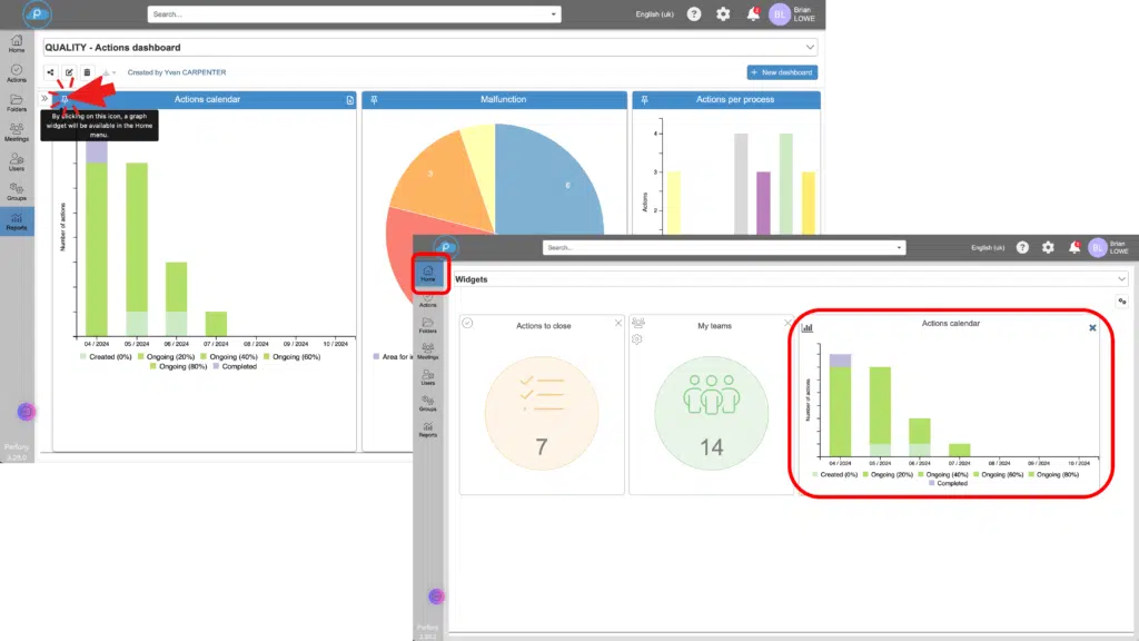 - Depuis le tableau de bord, cliquez sur l’icône en haut à gauche du graphique pour l’épingler.