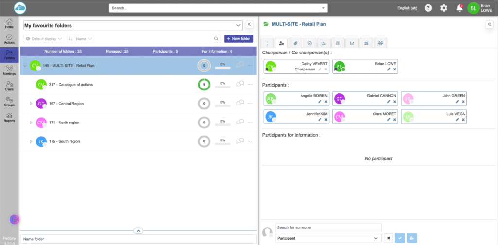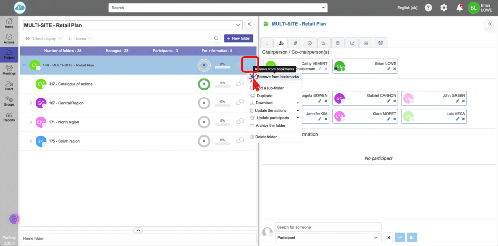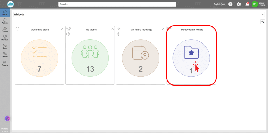 Un dossier favori est un dossier que vous consultez régulièrement et que vous voulez voir apparaitre facilement. La fonctionnalité de favori pour un dossier dans Perfony va vous permettre de :