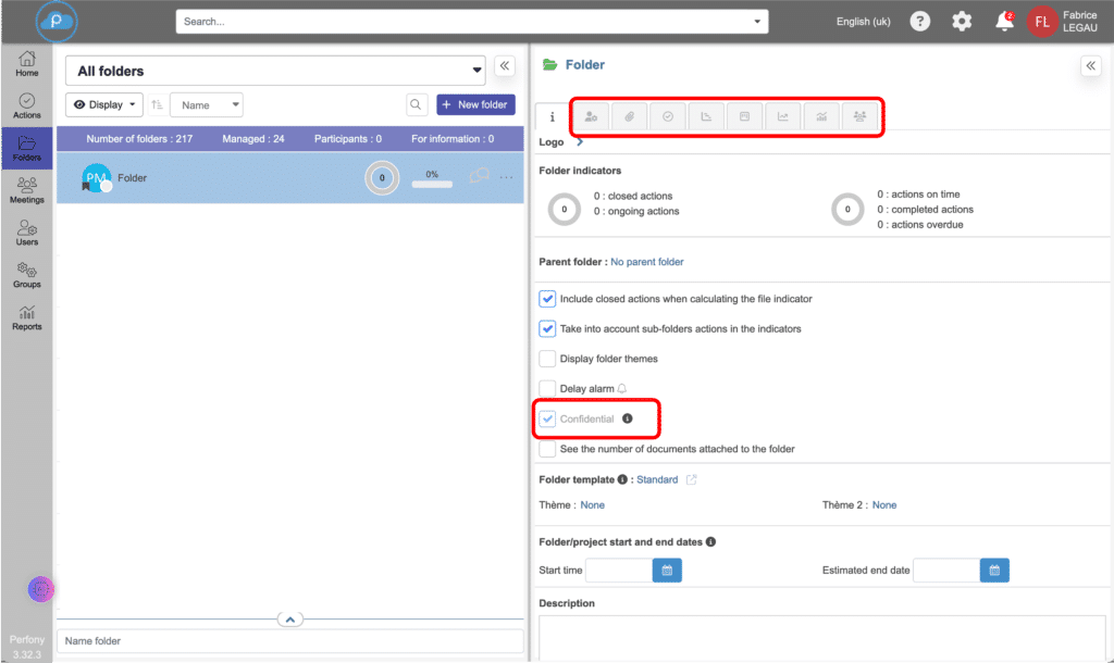 L’accès au contenu d’un dossier est possible à la condition que le pilote ou co-pilote du dossier en question désactive la case « confidentiel » depuis l’onglet « information ».