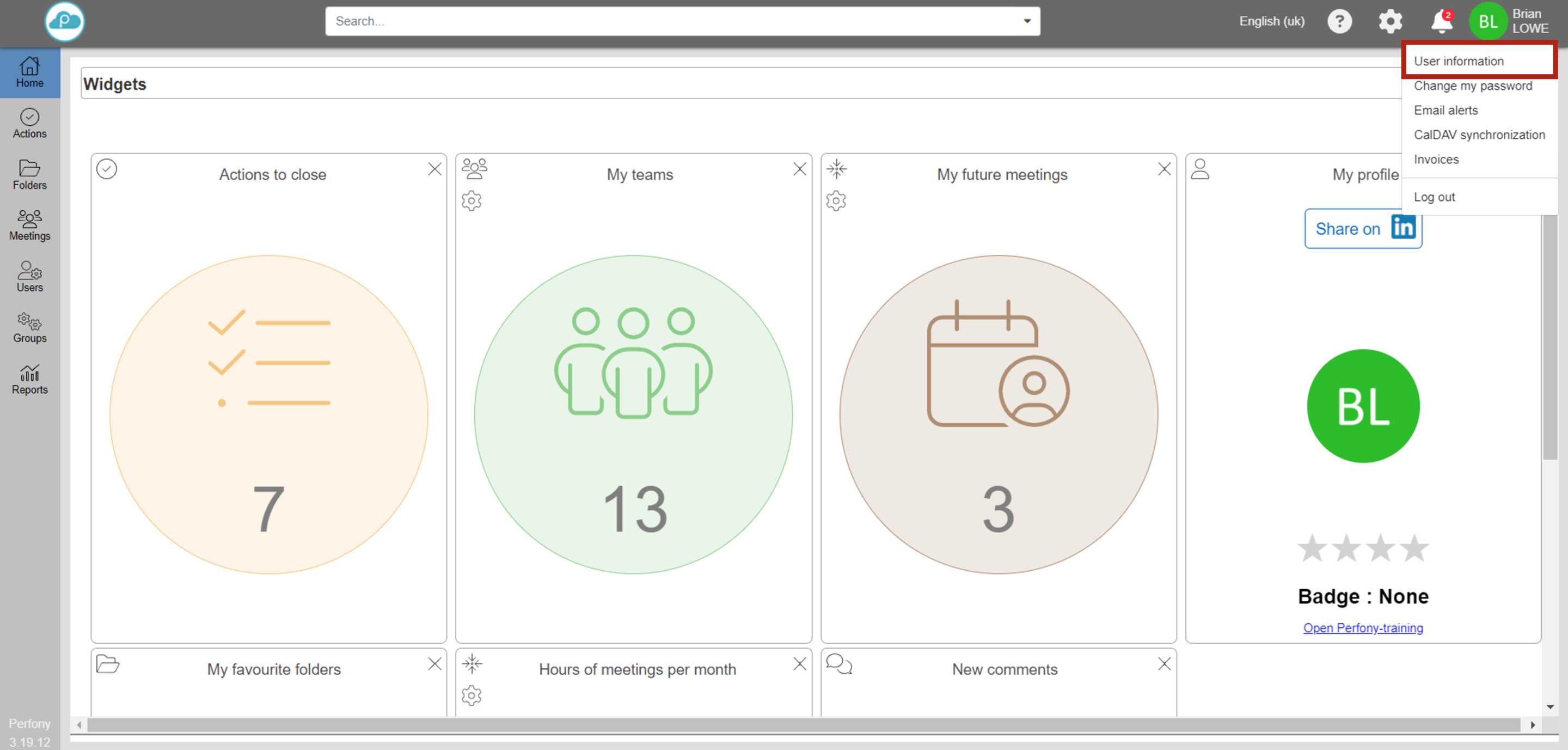 Pour activerez l’une des pages de personnalisation de votre profil utilisateur, il vous suffit de cliquer sur votre avatar en haut à droite puis sur « information utilisateur ».