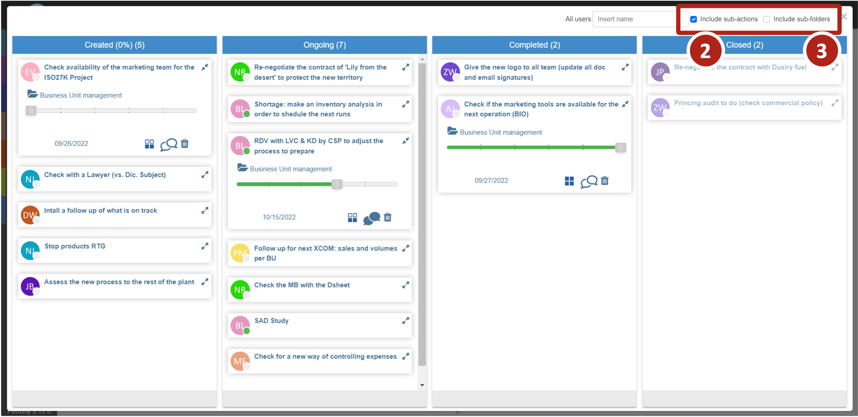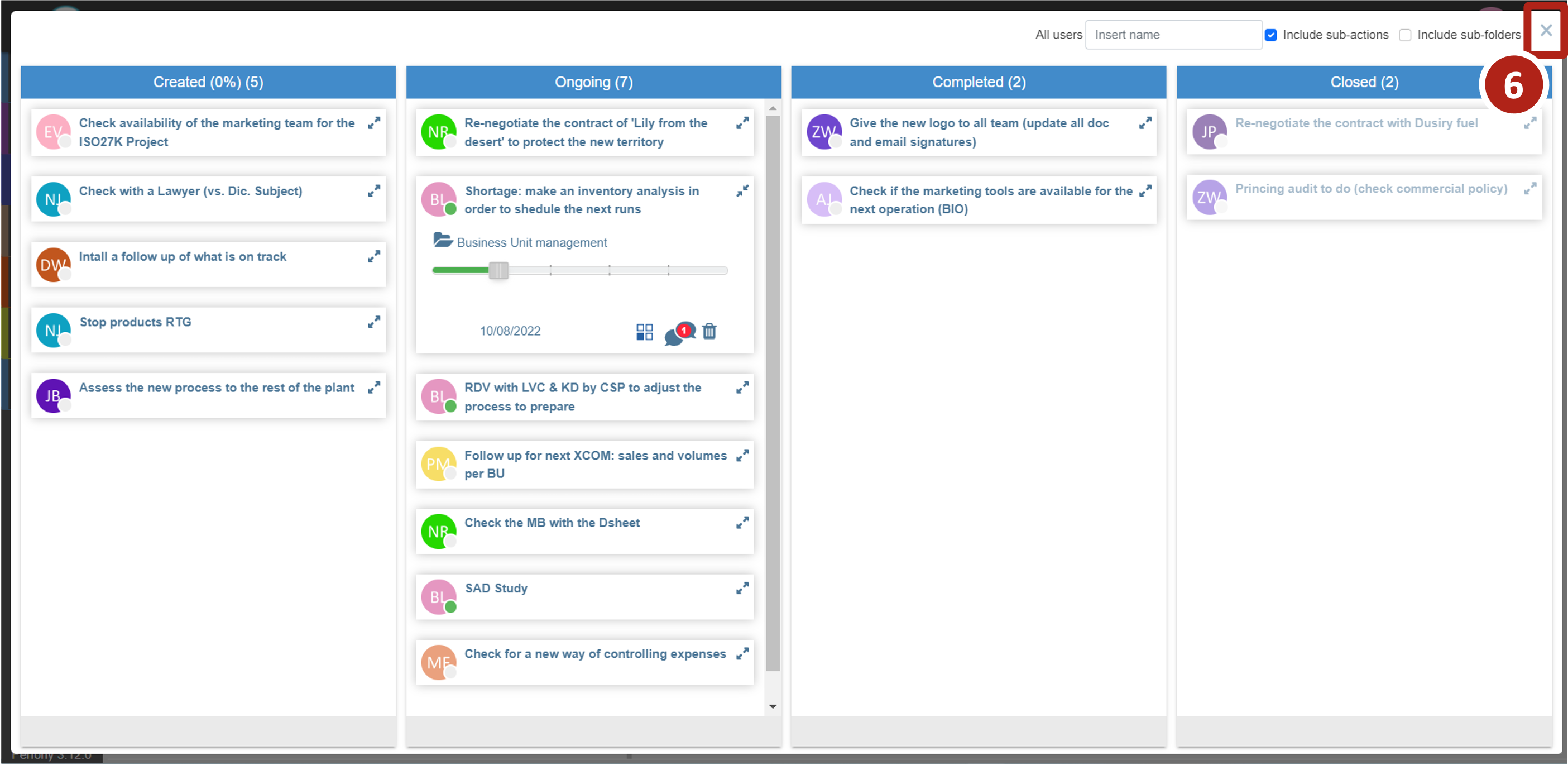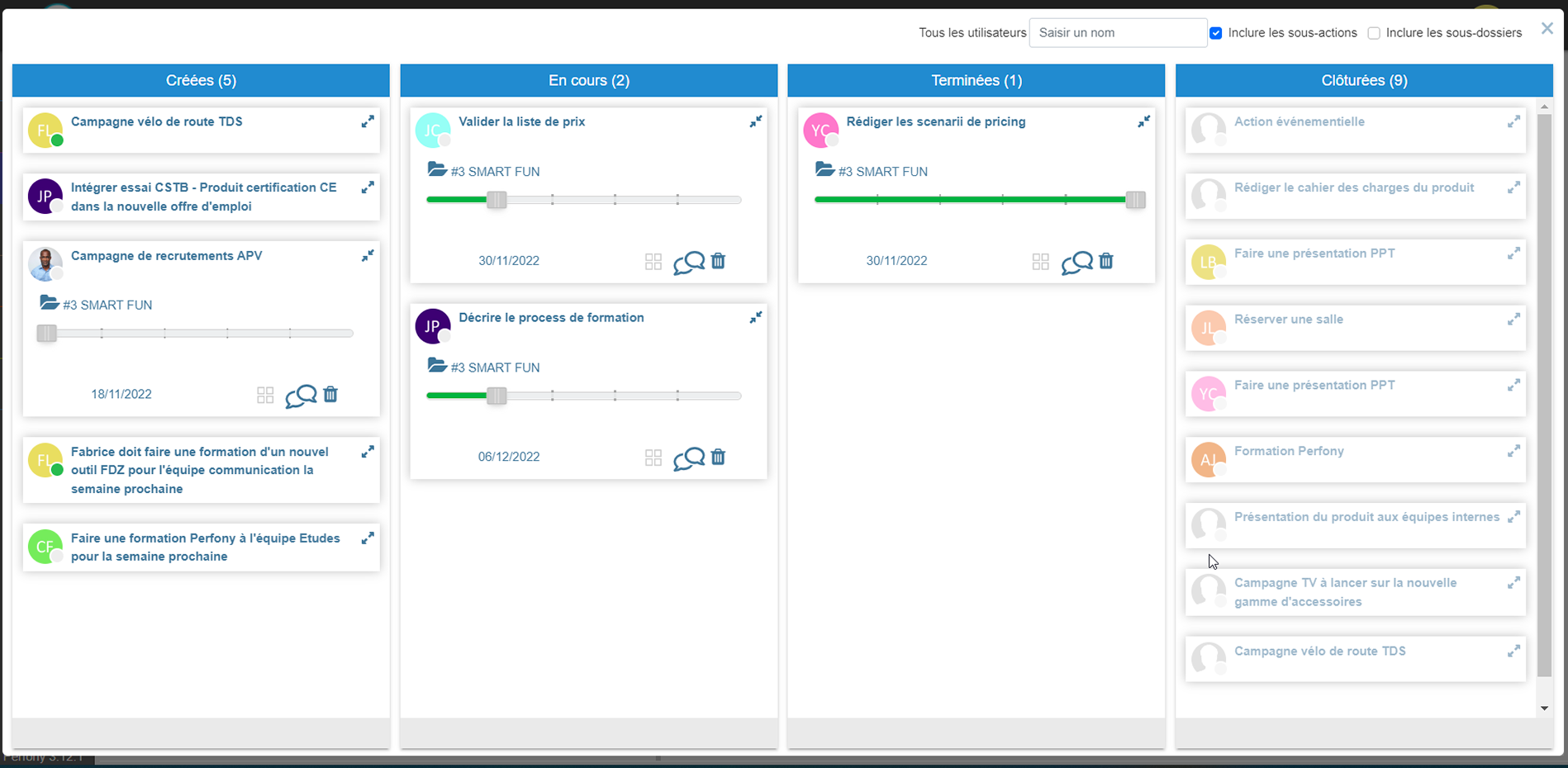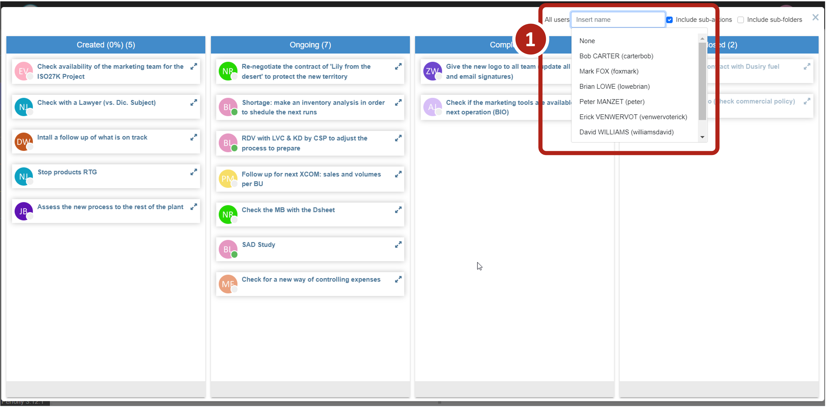 Vous pouvez également choisir de n’afficher que les actions de certains responsables pour alléger l’affichage.
