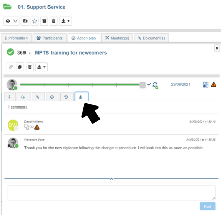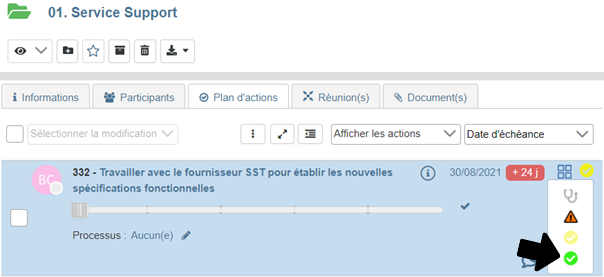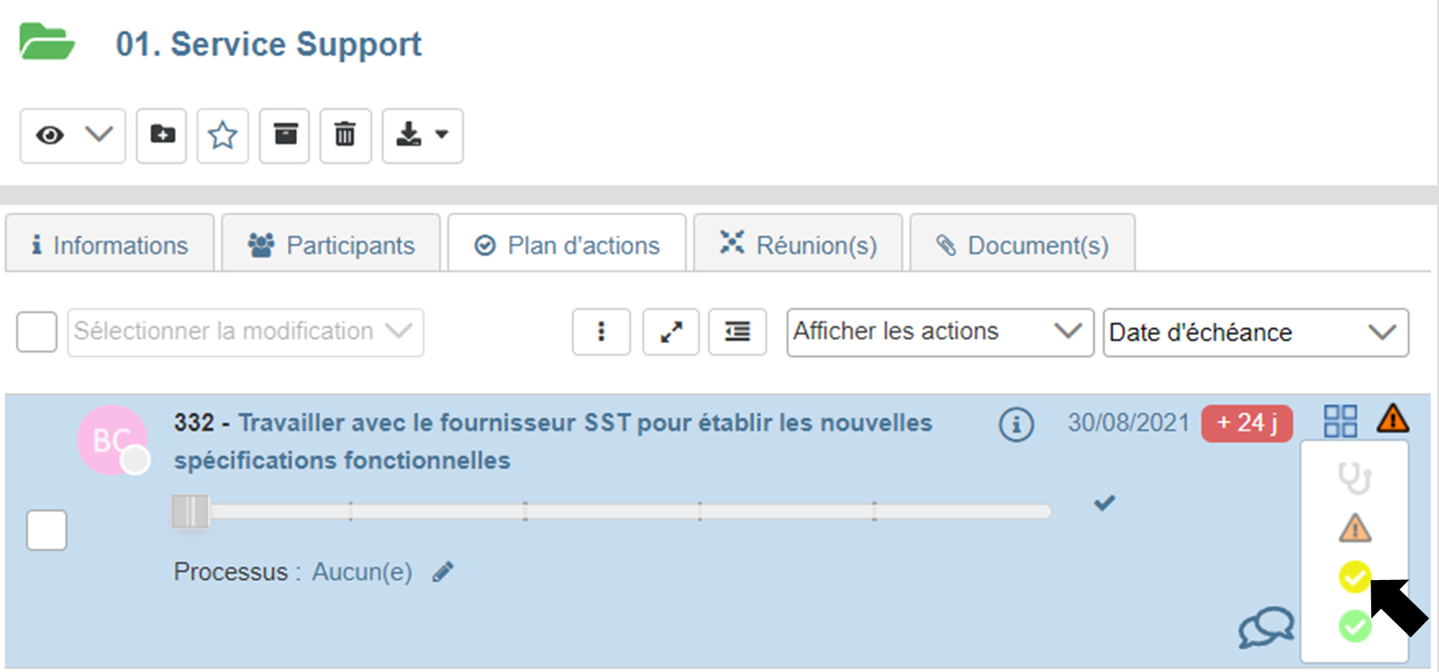 L’audité est le responsable de l’action, il voit s’afficher l’icône en bout d’action ainsi que le set d’icônes par menu déroulant :