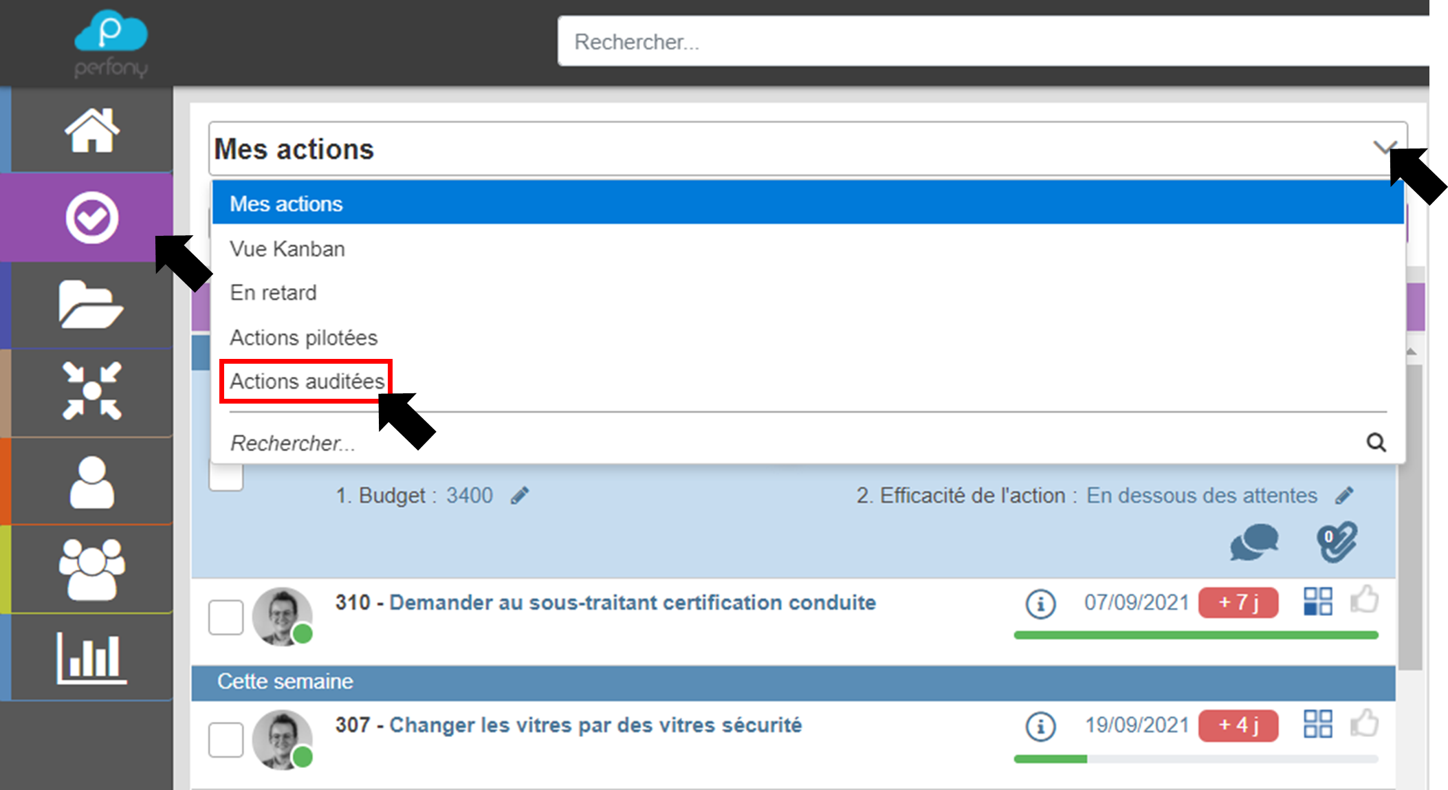 Pour l’auditeur et l’audité, une liste spécifique regroupant toutes les actions auditées est disponible :