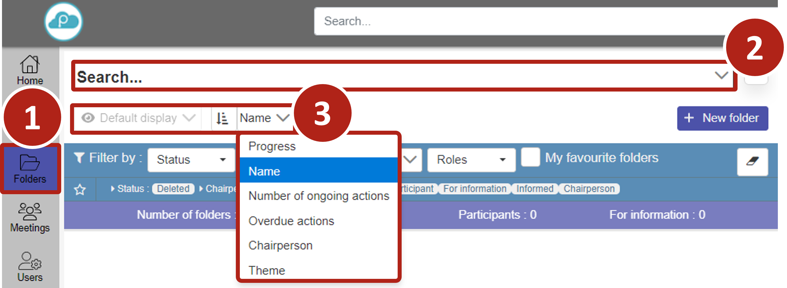En vous rendant dans le menu « Mes dossiers » puis « Recherche… » vous pouvez trier l’ordre d’affichage des dossiers à votre convenance.