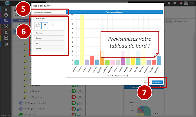 • Du type de bloc souhaité : camembert, histogramme ou numérique