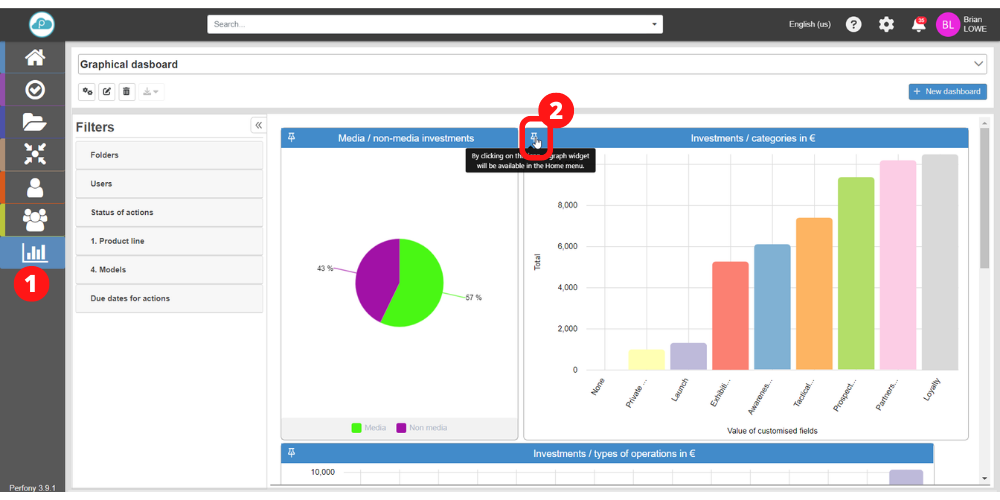 Imaginez que vous ayez besoin d’avoir sous les yeux constamment le coût des tâches, le nombre d’actions par secteurs, etc. Il sera donc nécessaire d’avoir un accès simple et rapide pour ne pas manquer les informations dont vous avez besoin. C’est pourquoi il est intéressant d’épingler les tableaux de bord graphique important afin d’y avoir accès dès la connexion sur la page d’accueil.
