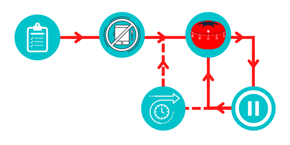 Le but de cette méthode est de créer des plages de concentration sur une action unique pendant un temps préalablement défini et en éliminant toutes les distractions.
