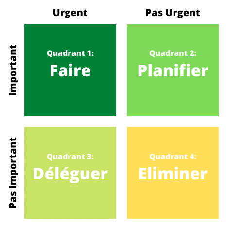 Ainsi c’est donc un outil qui aide à déterminer quelles sont les actions à mener en premier. La matrice se présente sous la forme de quatre quadrants qui sont :