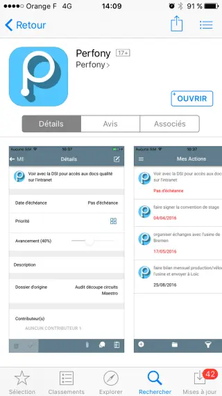 L’application mobile Perfony résout tous ces problèmes de support de travail. Vous pourrez consulter vos actions en quelques secondes et vérifier où vous en êtes dans l’avancement de votre plan d’action.
