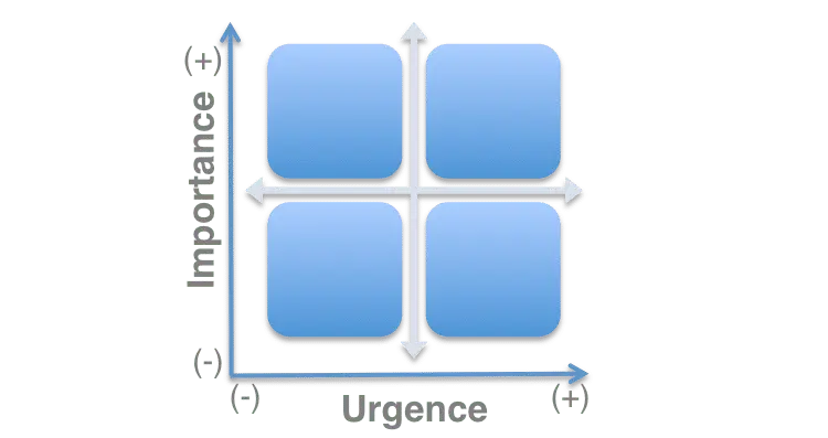 Pour Eisenhower, la priorité d’une action était liée au cumul de deux facteurs : l’urgence et l’importance. Ainsi, on peut représenter son système par un simple tableau à double entrée, avec sur un axe le degré d’urgence et sur un autre, le degré d’importance.