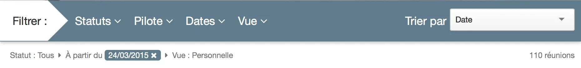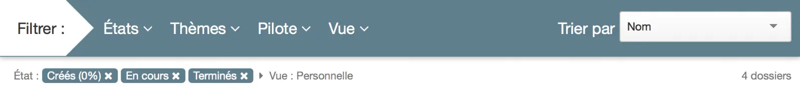Nous avons travaillé avec comme objectif permanent de simplifier l’outil pour vous simplifier la vie. Ainsi choisissez facilement et à l’envie les informations que vous voulez voir affichés sans avoir à rentrer dans le détail d’un dossier ou d’une réunion.