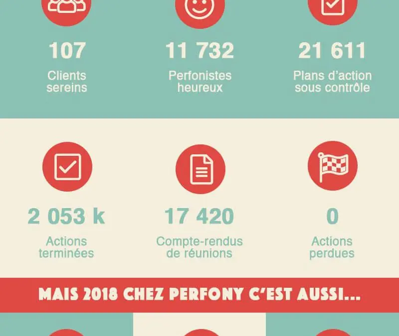 Perfony en 2018 c’est… Suivez nous : Entrées similaires: Collaboration Capital et Perfony, la rencontre Perfony, des plans d’action en béton dans Valeur Energie « La conjecture de Judith » ou comment Darwin peut aussi expliquer la vie d’une start-up Des notifications pour faire avancer vos plans d’action Le nouveau site de Perfony est en ligne ! Votre plan d’action en mobilité avec Perfony dans Microsoft Teams pour mobile!