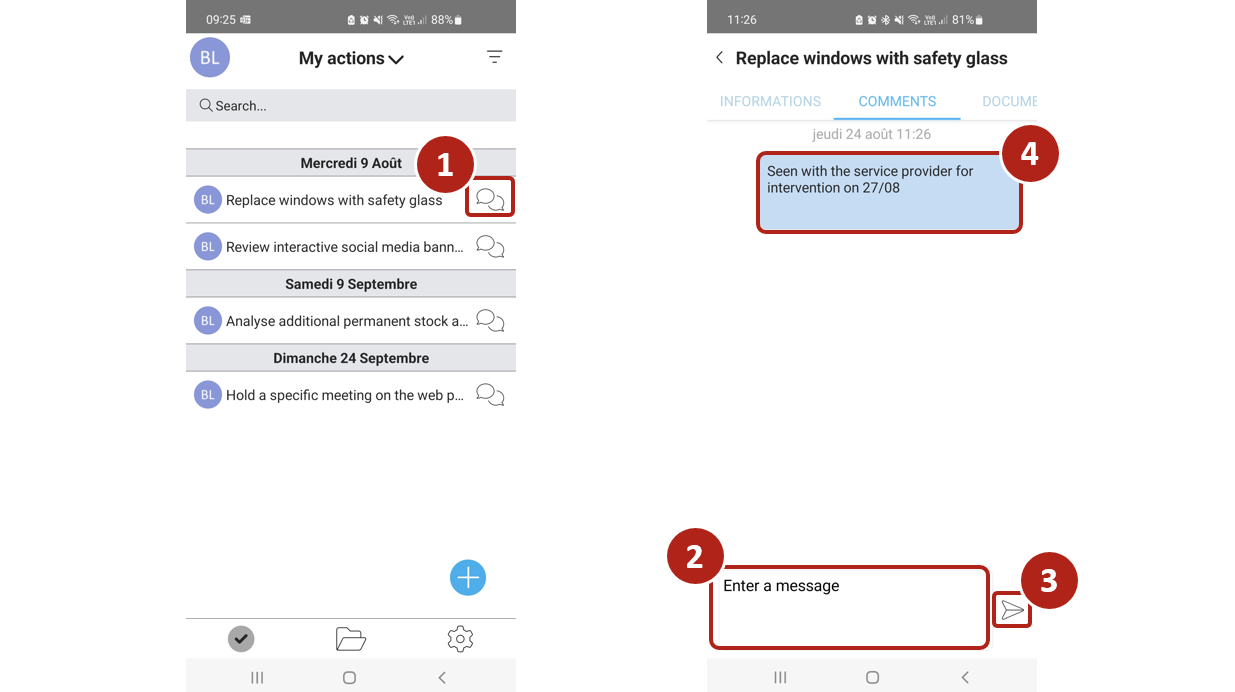 Fare clic sull’icona dei commenti per visualizzare lo spazio di scambio di un’azione.
