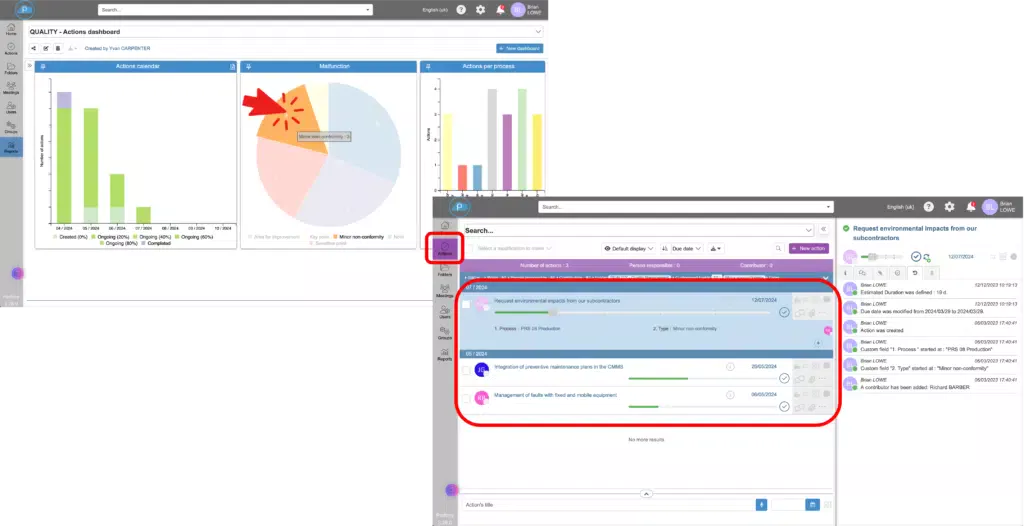 È sufficiente fare clic sulla parte del grafico che interessa per visualizzare i dettagli delle azioni in questione dal menu “Azioni”.