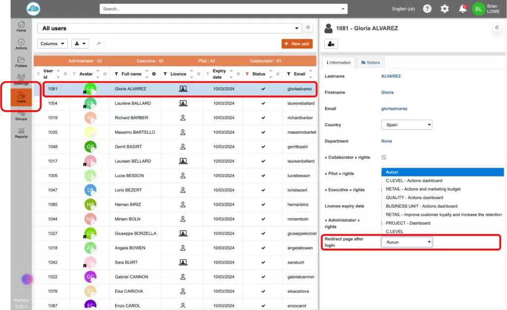 - In fondo al riquadro di destra, nel menu a discesa “Reindirizza alla connessione”, scegliere la dashboard che sarà la pagina iniziale dell’utente.
