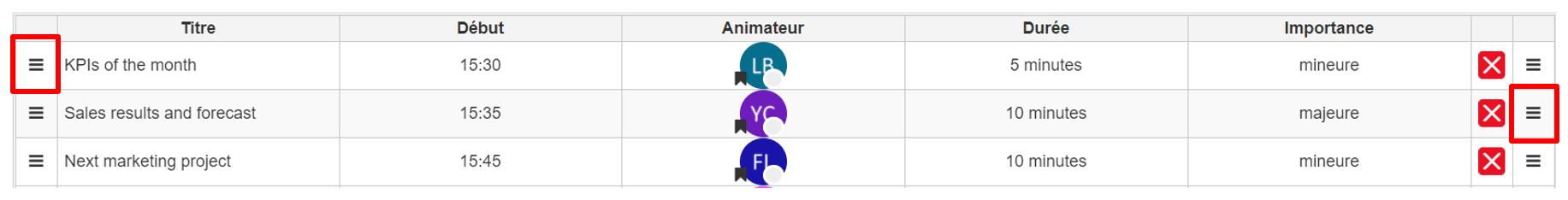 Aggiungete un titolo ad ogni punto dell’ordine del giorno, selezionate un facilitatore, definite il tempo da dedicare a questo punto e infine l’importanza del punto (minore, maggiore, critico).