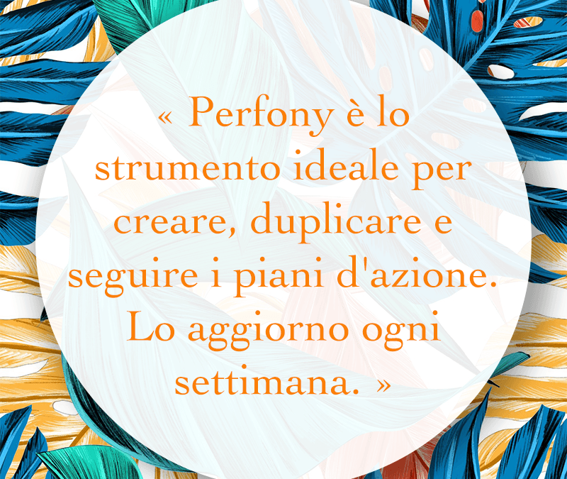 Perfony è lo strumento ideale per creare, duplicare e seguire i piani d’azione dei miei concessionari. Lo aggiorno ogni settimana.