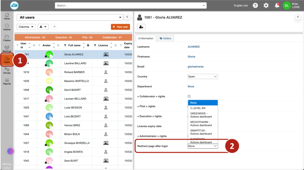 Se non avete accesso al menu “utenti”, chiedete al vostro amministratore Perfony di farlo per voi.