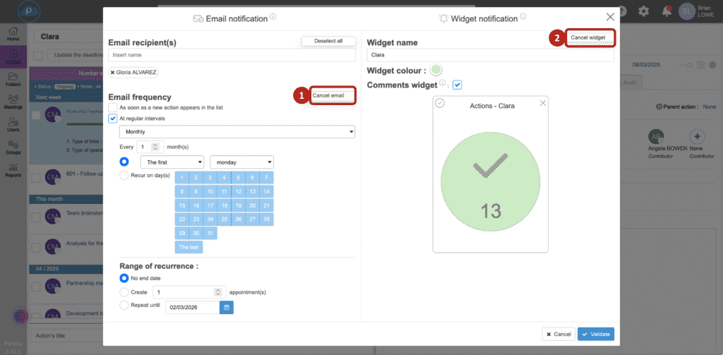 Let op: je kunt ervoor kiezen om per e-mail of per widget te worden geïnformeerd, maar je bent niet verplicht om beide te ontvangen. Om dit te doen, moet je klikken op “e-mail annuleren” [] of “widget annuleren” [], wat je voorkeur heeft. Anders is de validatieknop niet actief. Je kunt deze instellingen later altijd nog wijzigen.