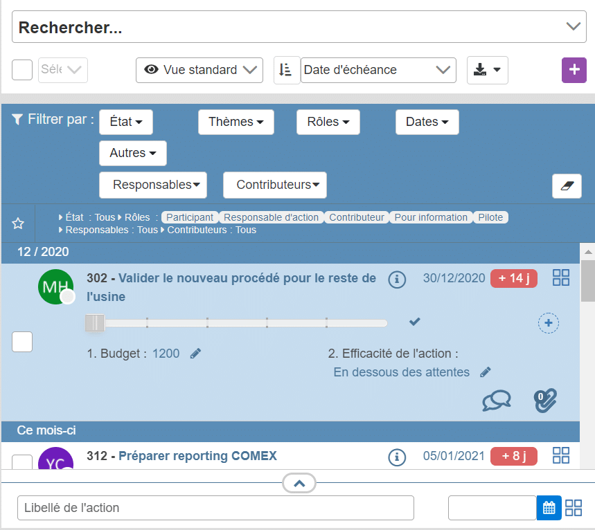 Filter op status: om alleen de lopende acties weer te geven bijvoorbeeld of die voltooid enz…