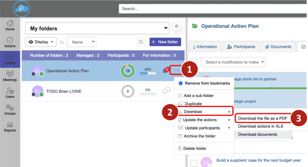 No menu da pasta“, clique em”download” e depois em”download da pasta como PDF”: