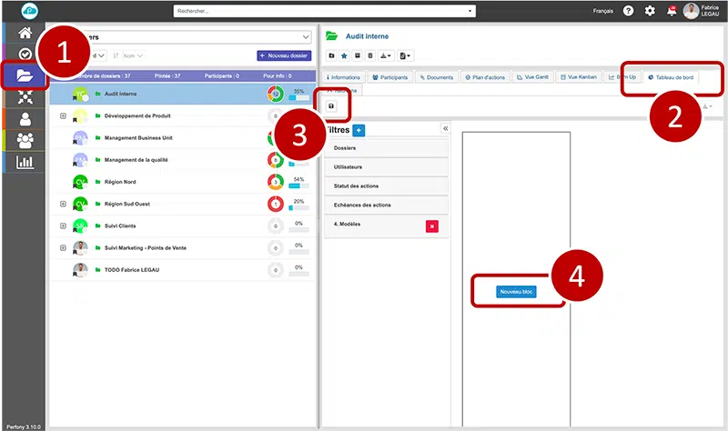 Clique em “novo bloco” para abrir o editor do painel de instrumentos